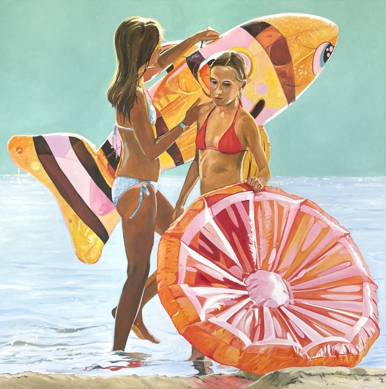 Mädchen mit Luftmatratzen